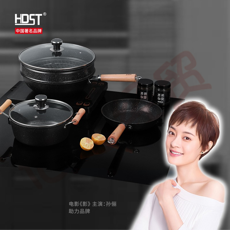HDST 御釜 麥飯石不粘鍋炒鍋煎蛋平底鍋家用炒菜鍋不沾鐵鍋煤氣電磁爐通用 六件套裝 YF-20124 自營(yíng)
