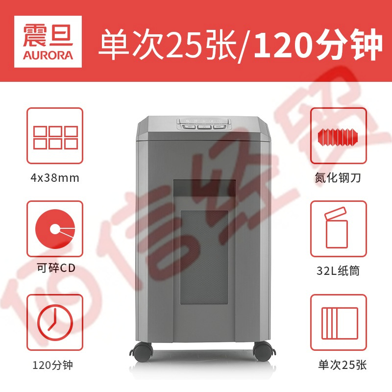 震旦AURORA 4級保密辦公商用碎紙機(單次25張 持續(xù)120分鐘 32L 可碎卡、光盤) AS2588CD 自營