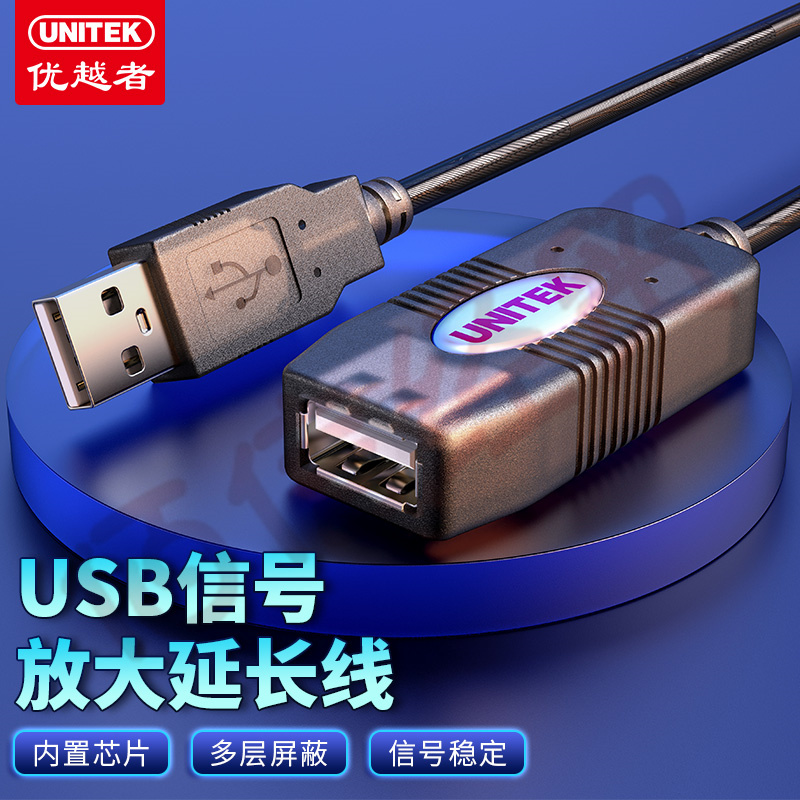 優(yōu)越者(UNITEK)USB延長線 2.0公對母數(shù)據(jù)線帶信號放大器電腦鼠標(biāo)無線網(wǎng)卡連接線加長線5米 Y-250 自營