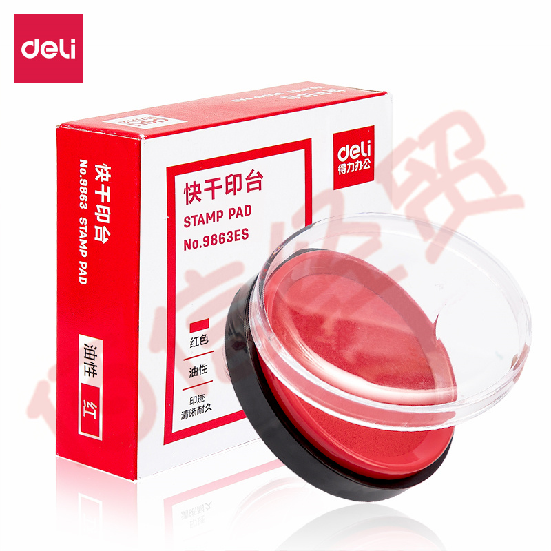 得力(deli)9863ES φ80mm圓形財務快干印臺印泥 清晰印記 財務用品 辦公用品 紅色 自營