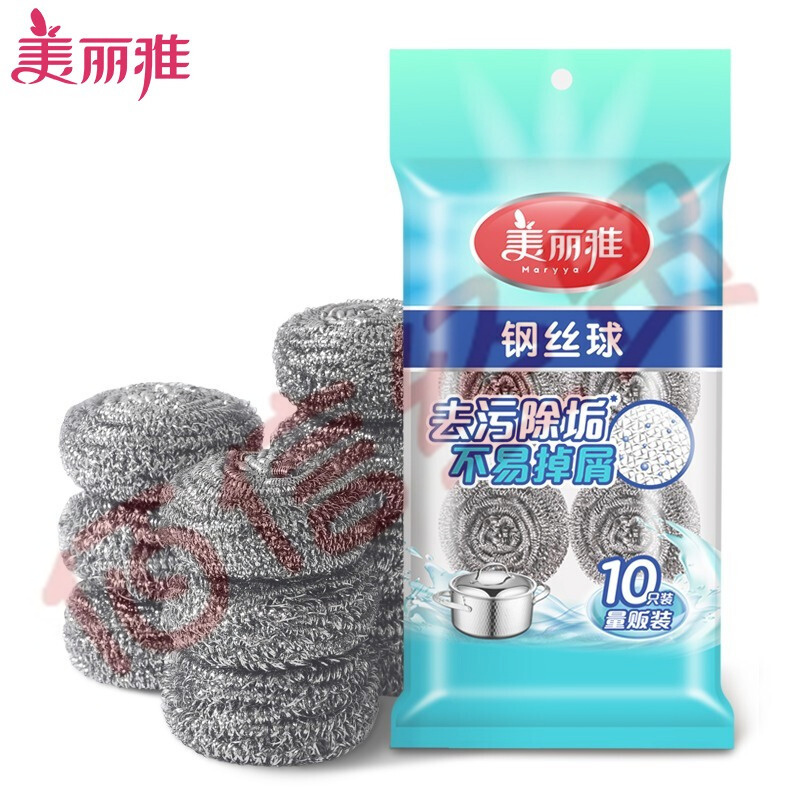美麗雅 鋼絲球10只裝 家用廚房去油污洗碗刷鍋清潔球刷不銹鋼金屬球不易掉屑(10個起售) 自營
