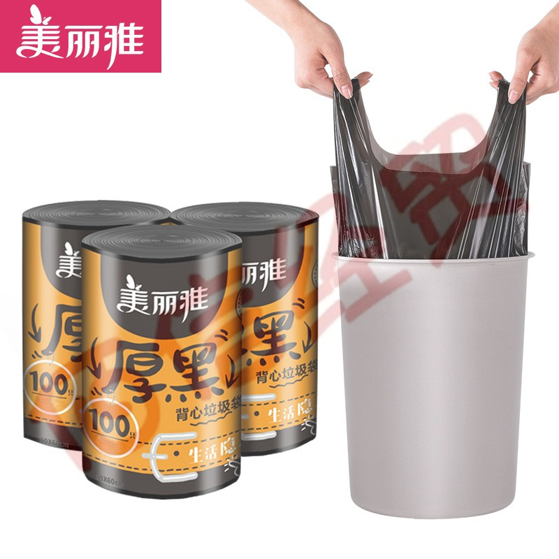 ¥19.00美麗雅(MARYYA)厚黑垃圾袋加厚加一次性手提垃圾袋家用塑料袋 背心式50*60cm【100只】(10個(gè)起售)