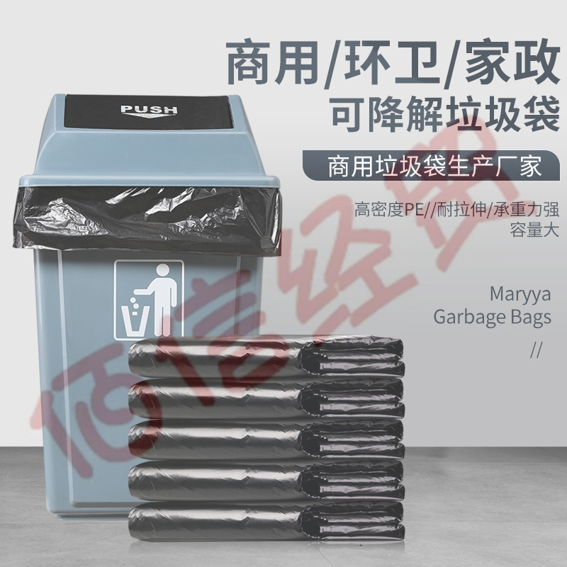 美麗雅 可降解加厚型物業(yè)商用垃圾袋 黑色環(huán)保塑料袋 80X100cm【厚1.5絲50只裝】(5個起售) 自營