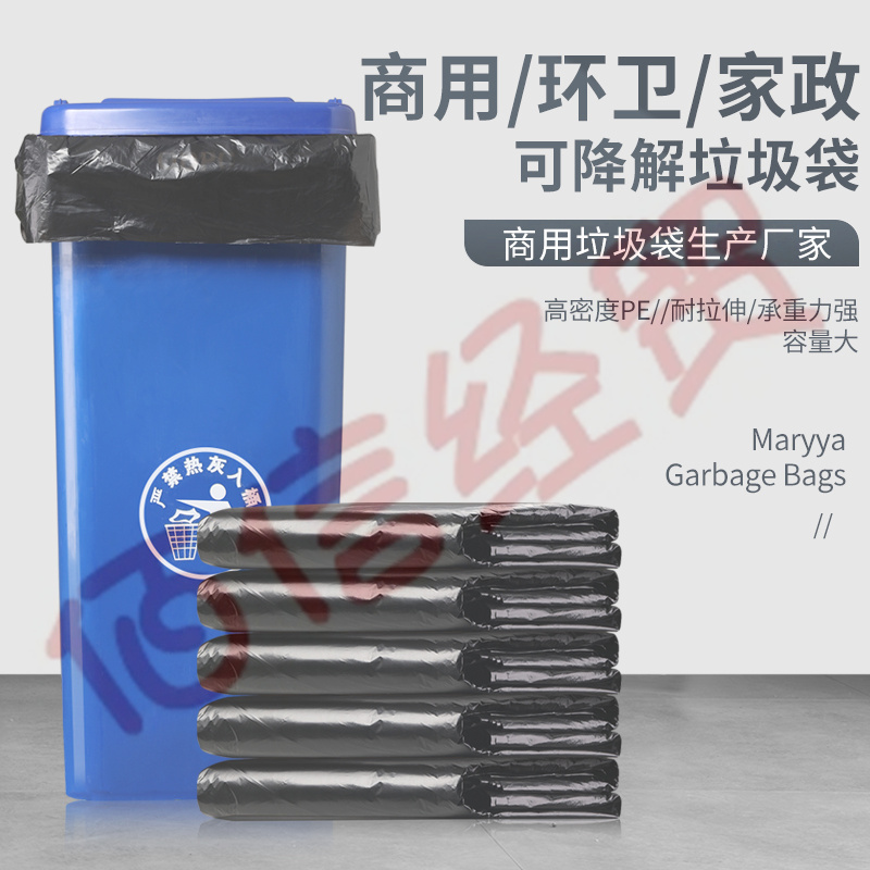 ¥38.00美麗雅 可降解加厚型物業(yè)商用垃圾袋 黑色環(huán)保塑料袋 60X80cm【厚1.2絲50只裝】(10個(gè)起售)