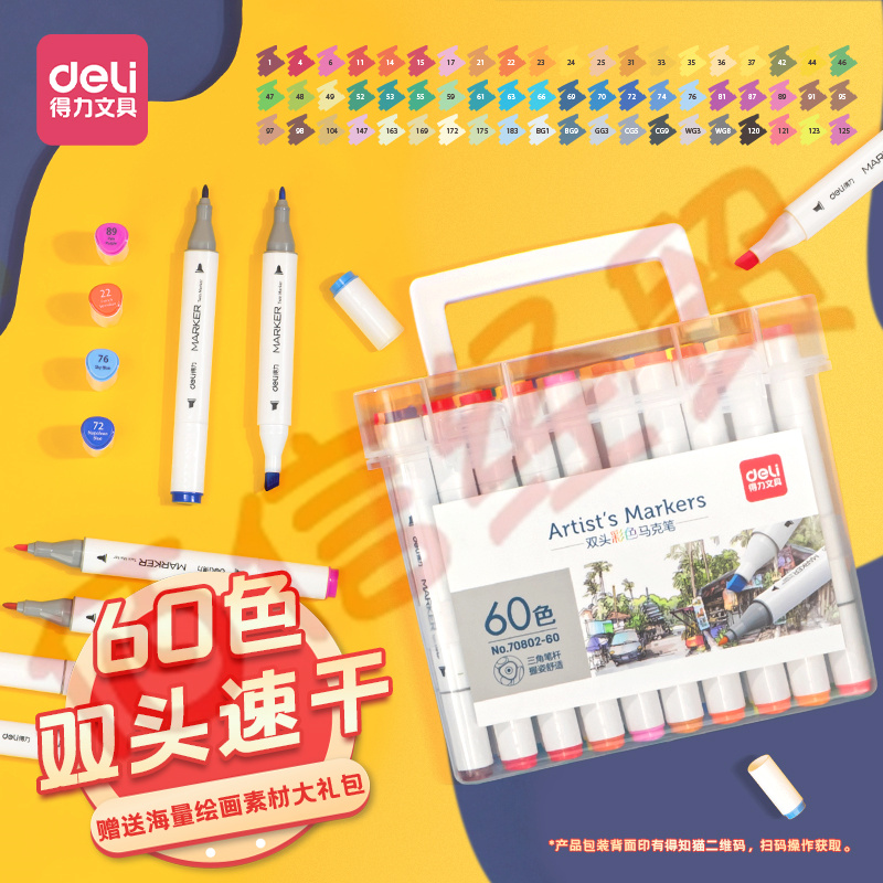 得力(deli)雙頭馬克筆套裝60色 手繪廣告設(shè)計(jì)動(dòng)漫畫畫創(chuàng)作學(xué)生兒童美術(shù)生專用繪畫美術(shù)用品六一禮物 70802-60 自營