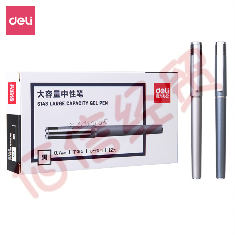 得力(deli)12支0.7mm辦公中性筆簽字筆 子彈頭黑色DL-S143 自營(yíng)