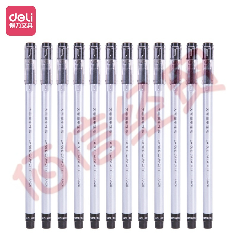 得力(deli)0.5mm黑色中性筆金屬?lài)娖峁P 子彈頭簽字筆 12支/盒