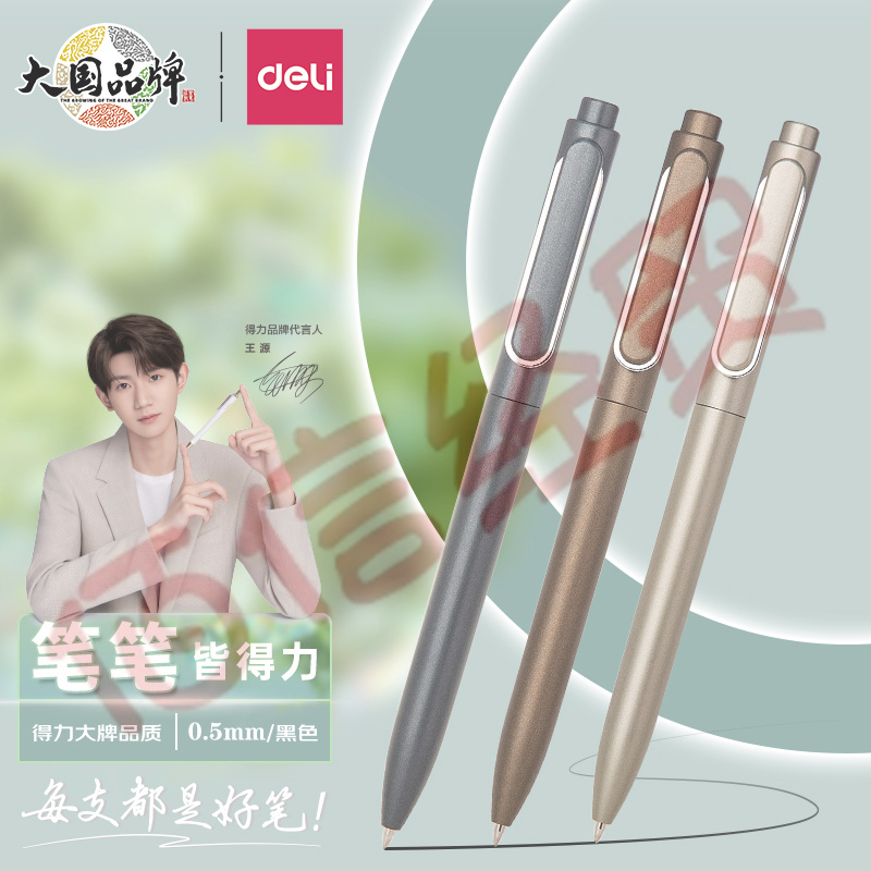 得力(deli)【順滑之星】樂(lè)素臻順滑中性筆簽字筆 0.5mm子彈頭按動(dòng)筆水筆 金屬噴漆 黑色 12支/盒A12 自營(yíng)