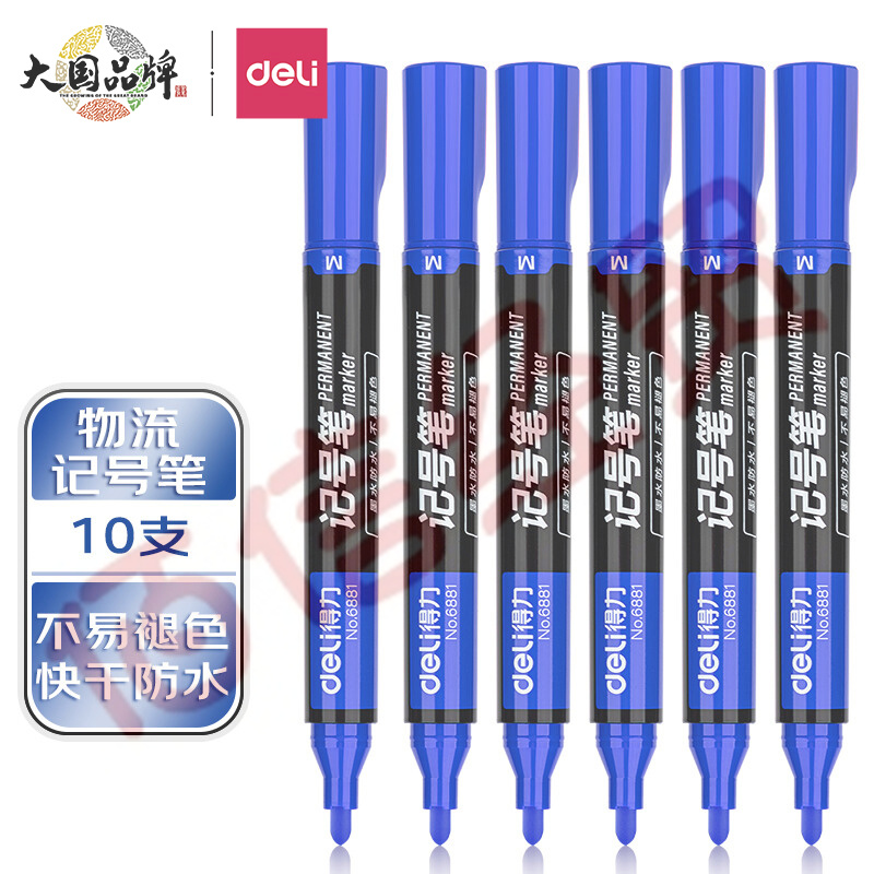 得力(deli)紅色粗頭物流油性記號(hào)筆大頭筆 10支/盒6881 辦公用品