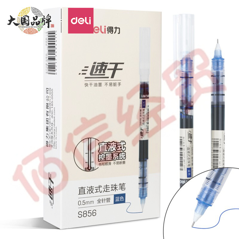 得力(deli)直液筆走珠簽字筆 學(xué)生辦公中性筆 ins無印簡(jiǎn)約風(fēng) 0.5mm全針管12支/盒S856藍(lán) 自營(yíng)