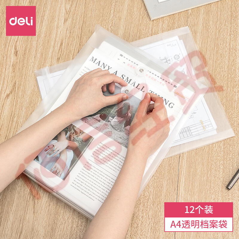 得力(deli)12個(gè)裝A4透明文件袋防水檔案袋 招標(biāo)產(chǎn)檢資料袋 文件保護(hù) 財(cái)務(wù)票據(jù)收納5511A 自營(yíng)