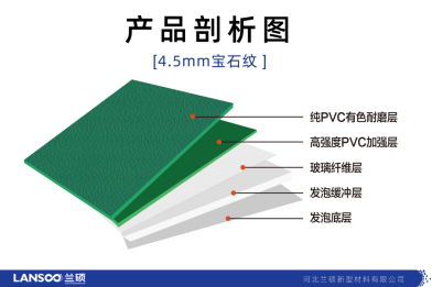 采用優(yōu)質(zhì)PVC原生料,環(huán)保增塑劑,無甲醛、無重金屬等有害物質(zhì),地板環(huán)保安全,保障健康運(yùn)動(dòng)環(huán)境。