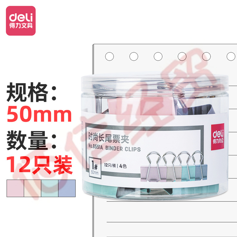 得力(deli)-12只-50mm-超大號莫蘭迪色長尾票夾-8551A 自營