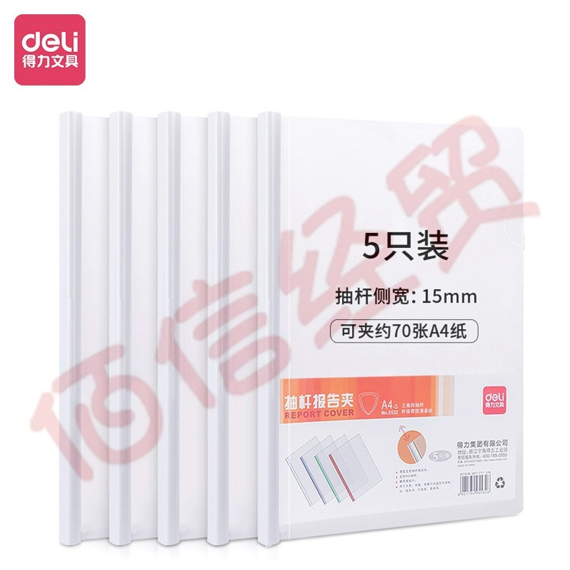 得力5532A_抽桿報告夾(混)(5個/包) 大包裝5包裝透明抽桿文件夾報告夾 自營