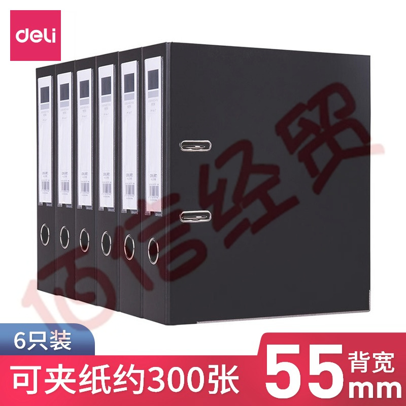 得力(deli) 5480 加厚型快勞夾/文件夾 A4兩孔活頁夾打孔夾 寬55mm 辦公用品 黑色-背寬2英寸/6個(gè)裝 自營