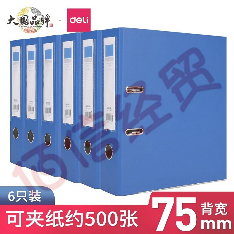 得力(deli) 5481 加厚型快勞夾/文件夾 A4兩孔活頁夾打孔夾 寬75mm 辦公用品 藍色-背寬3英寸/6個裝 自營