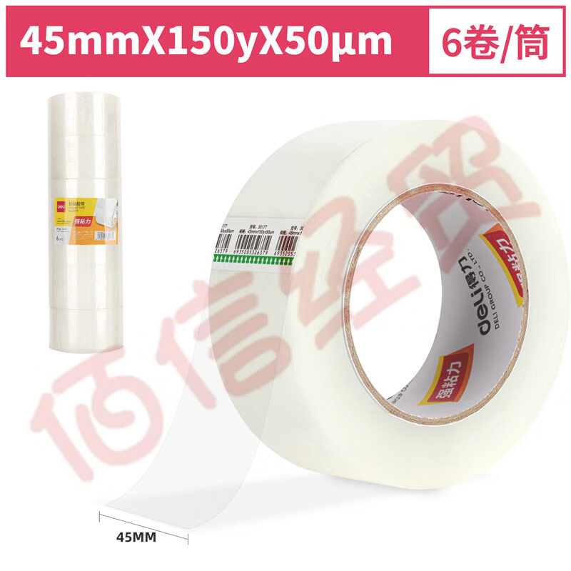 得力(deli) 高品質(zhì)高透明封箱膠帶打包膠帶 45mm*150y*50um 6卷/筒 辦公用品 30177 自營