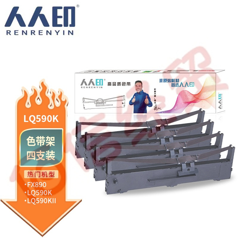 人人印LQ590K色帶4支裝 適用愛普生EPSON FX890 LQ590K LQ590KII LQ595K S015337 C13S015590打印機(jī)色帶架 自營