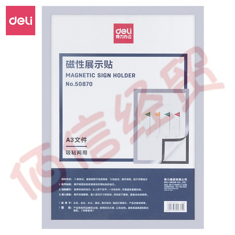 得力(deli)50870 A3磁性展示貼 營業(yè)執(zhí)照正本保護(hù)套 公告欄通知貼紙 銀色 自營
