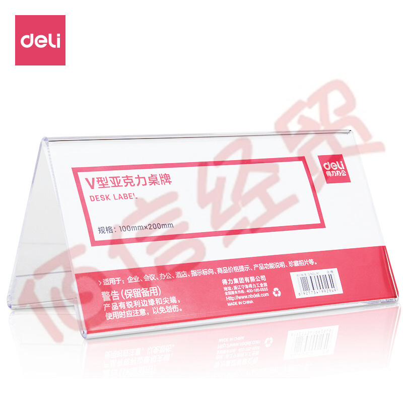 得力(deli)50874 V型100*200mm亞克力桌牌展示牌 會議擺件 10只裝 透明 自營