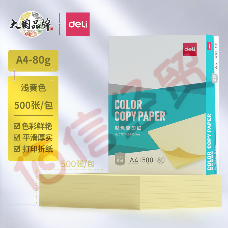 得力(deli)A4 80g 淺黃色彩紙復(fù)印紙 彩色非厚卡紙兒童手工紙剪紙打印紙 500張/包 7757-A4-500 自營