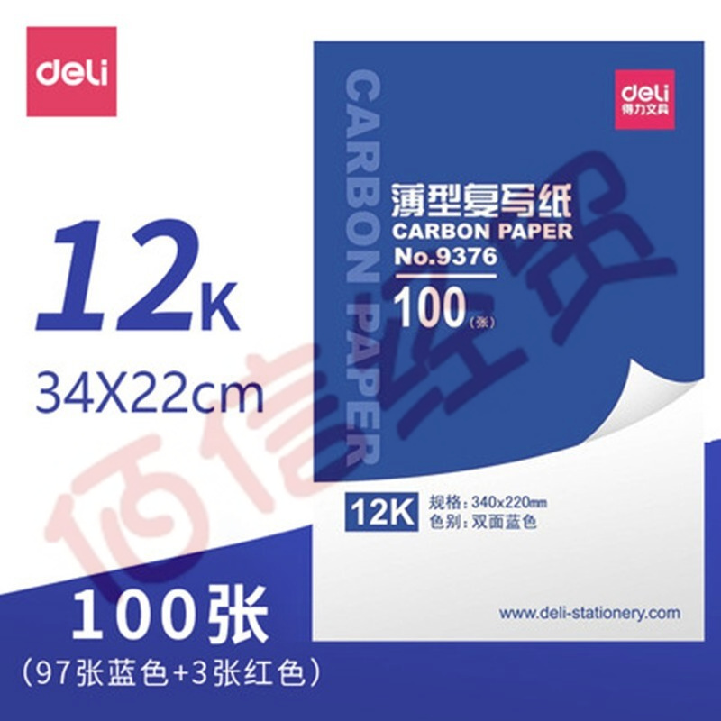得力(deli)經(jīng)濟(jì)耐用薄型雙面復(fù)寫紙 100張/盒 辦公用品 12K 340×220mm 9376 自營