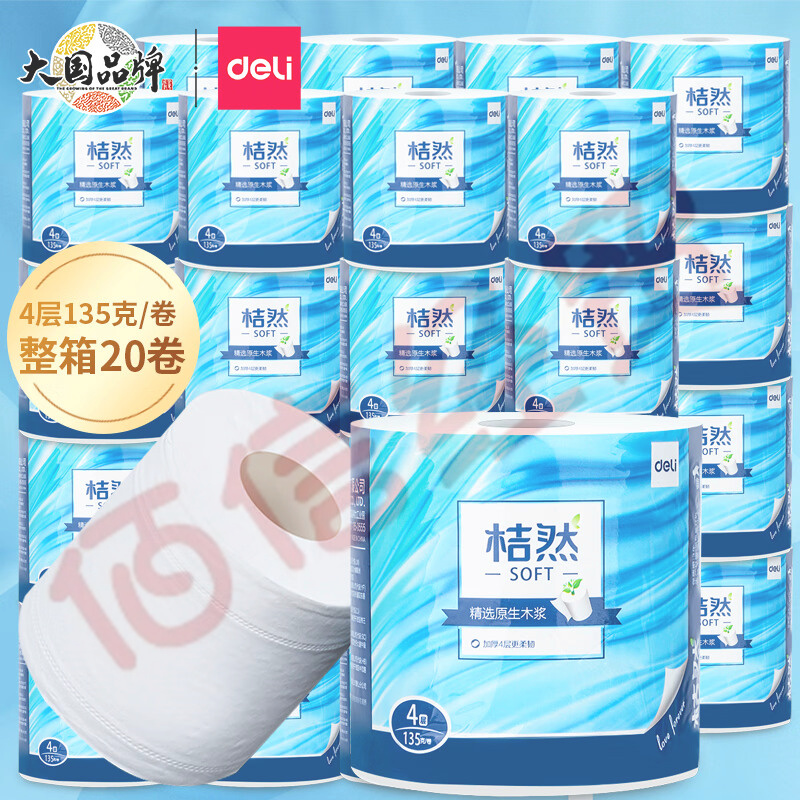 得力(deli)卷紙 經(jīng)典4層*135克*20卷 易降解衛(wèi)生卷筒紙 桔然soft系列紙巾 整箱銷售 WJ4135-01 自營