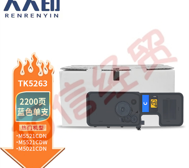 人人印TK-5253K藍(lán)色 適用京瓷Kyocera ECOSYS M5521CDW碳粉M5521CDN M5021CDN粉盒 TK5263大容量墨盒 含芯片 自營(yíng)
