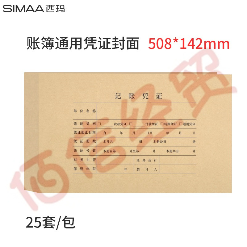 西瑪用友508*142mm賬簿通金額記賬憑證裝訂封面 發(fā)票版配套裝訂憑證封皮 Z010125--25張/包 20包/箱(單包價-整箱售-拍20組) 自營