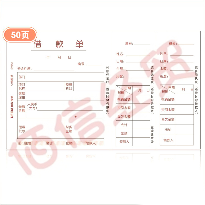 A4借款單S0342--208*127(KPJ101版) 50頁(yè)/本 5本/包 20包/箱 --整箱售--單包價(jià) 自營(yíng)