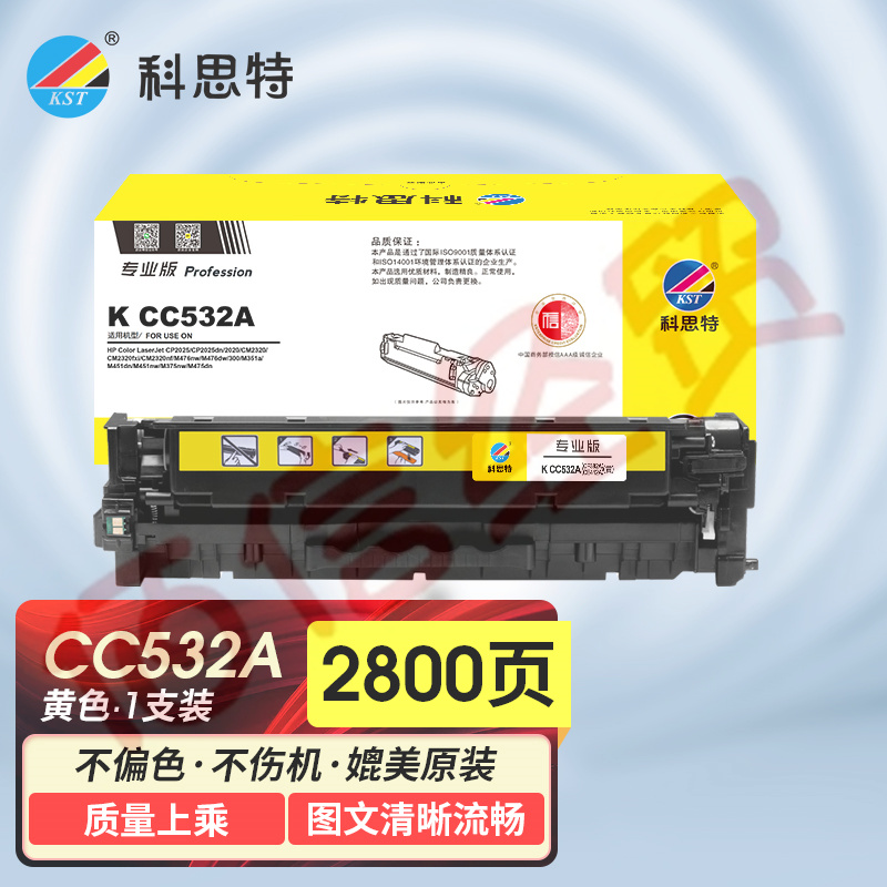 科思特K CC532A/CF382A/CE412A 硒鼓 適用惠普CP2025/CM2320/M476nw/M351a 黃色 可打印2800頁 專業(yè)版 自營