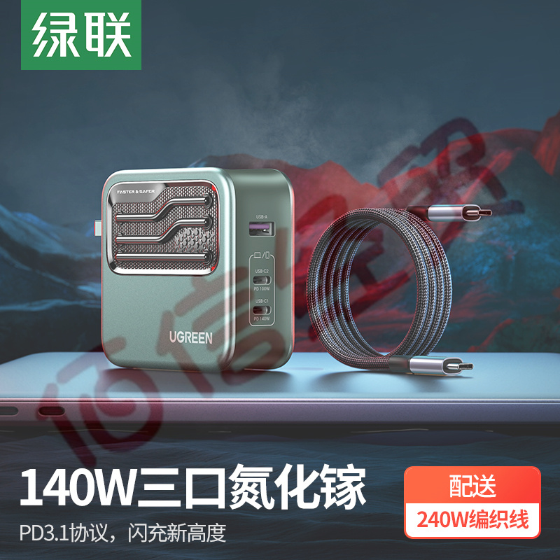 綠聯(lián) 閃電湃140W氮化鎵充電器GaN套裝 PD快充頭多口通用Macbook蘋果14/13Type-C華為手機(jī)筆記本配240W數(shù)據(jù)線 自營(yíng)