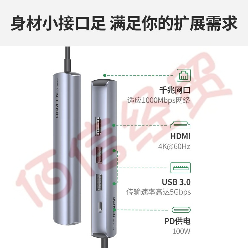 綠聯(lián) Type-C擴(kuò)展塢 USB-C轉(zhuǎn)HDMI轉(zhuǎn)換器網(wǎng)口分線器拓展塢4K投屏適用蘋果mac雷電4電腦 【五合一】HDMI +千兆網(wǎng)口+PD+USB*2 自營