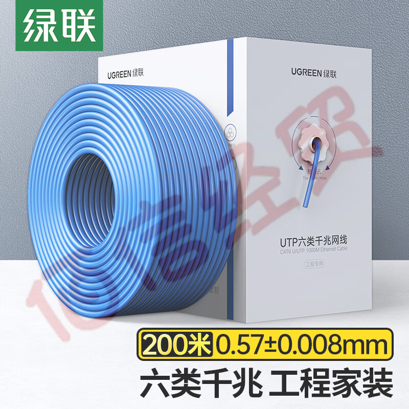 綠聯(lián)(UGREEN)六類網(wǎng)線【0.57±0.008mm純銅線芯】CAT6類千兆網(wǎng)絡(luò)箱線 工程家裝監(jiān)控布線非屏蔽200米 90234 自營