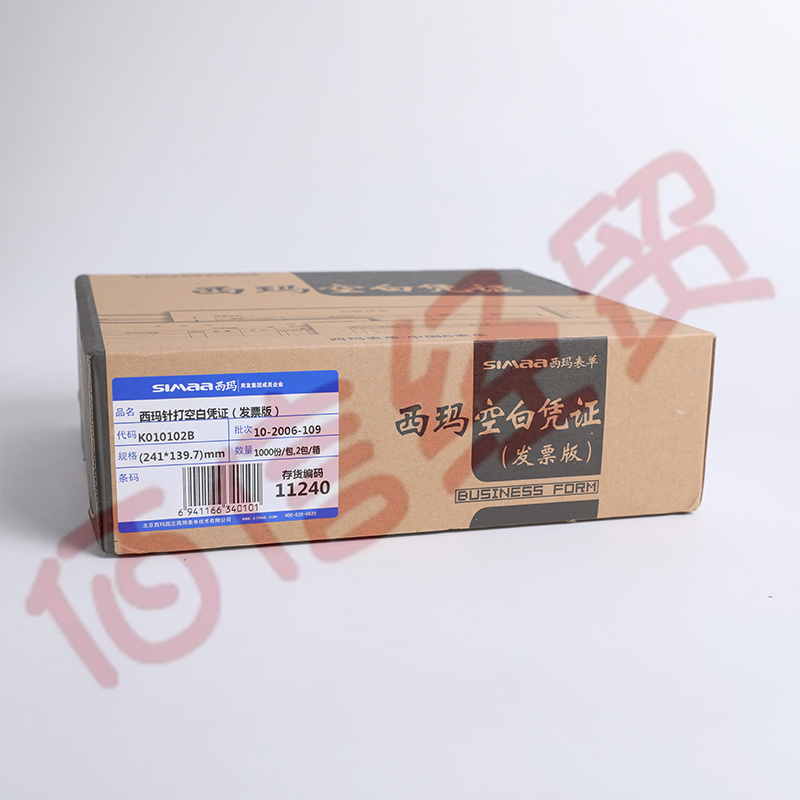 西瑪針打空白憑證(發(fā)票版)K010102B 1000份/包 2包/箱 241*139.7(整箱售) 自營