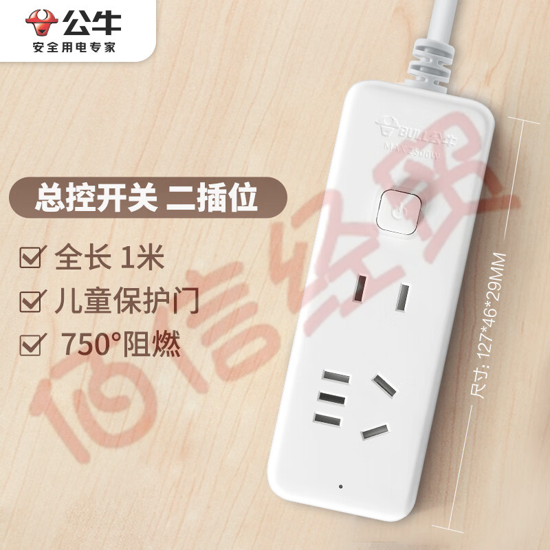 公牛(BULL)公牛桌洞USB插座/插線板/插排/排插/接線板/拖線板 5插孔+2USB口 GN-U2050