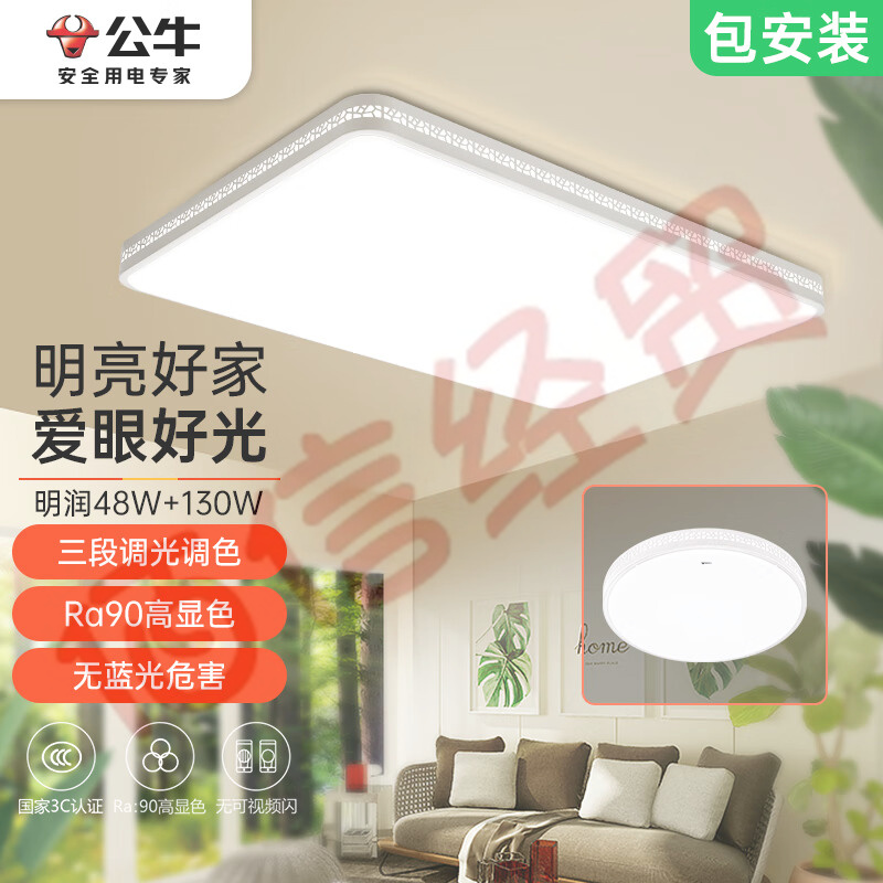 公牛(BULL)吸頂燈 明潤(rùn)MX-C130D-BS臥室燈客廳燈全屋燈北歐風(fēng)簡(jiǎn)約現(xiàn)代 130W+48W套裝 自營(yíng)