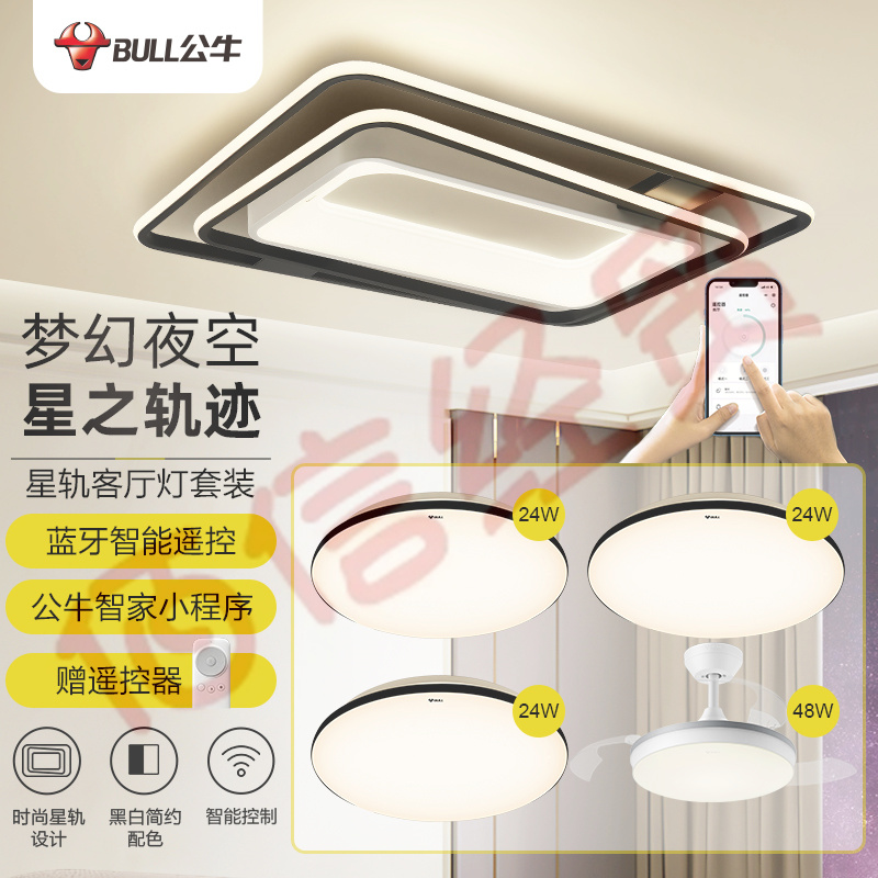 公牛(BULL)LED吸頂燈X35星軌MX-M130A-CD遙控器小程序控制無極調(diào)光/三檔調(diào)色(客廳燈+燦軒臥室燈*3+風(fēng)扇) 自營