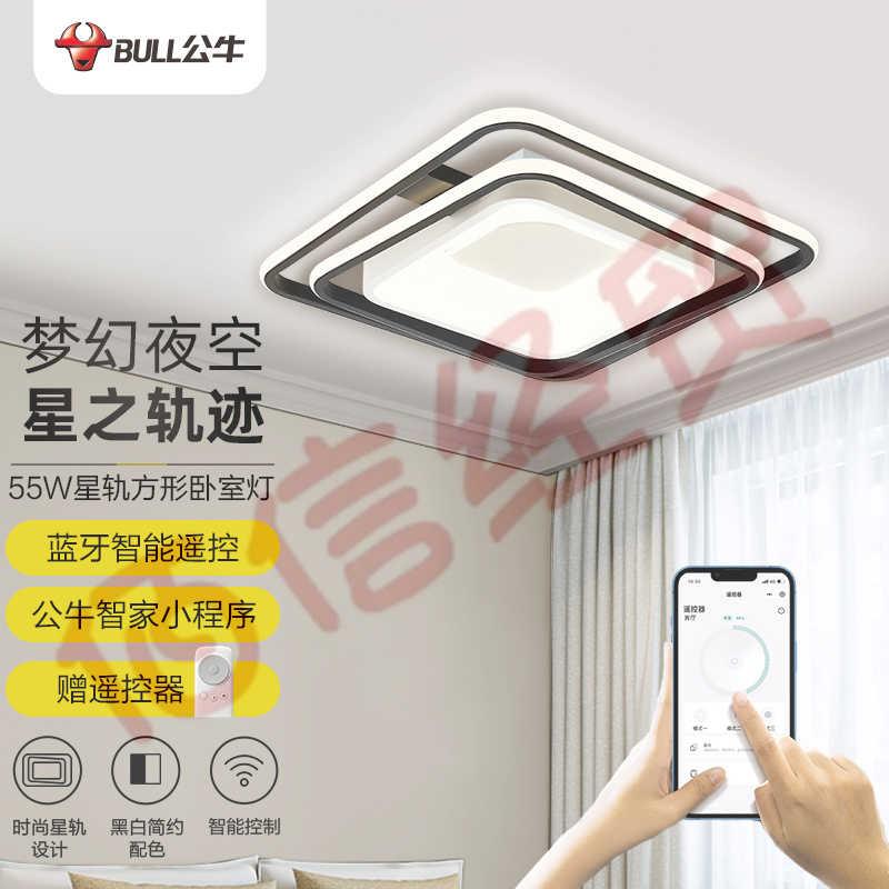 公牛(BULL)智能吸頂燈 X35星軌系列 遙控器小程序控制MX-M065A-CD臥室燈餐廳燈 無極調(diào)光/三檔調(diào)色 方形55W 自營