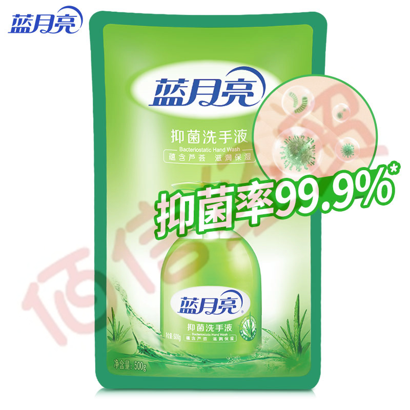 藍月亮 蘆薈抑菌洗手液補充裝 袋裝500g 清潔抑菌99.9% 泡沫豐富12瓶/箱(單瓶價)(整箱售) 自營