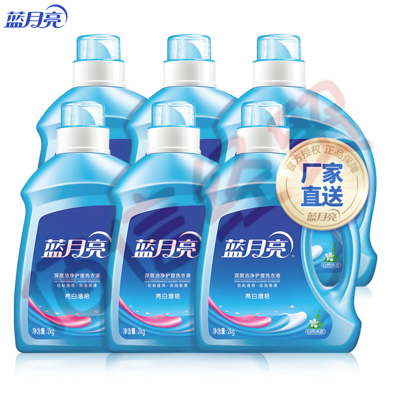 藍月亮 亮白增艷洗衣液(自然清香)2kg×6瓶 強效去污 自營