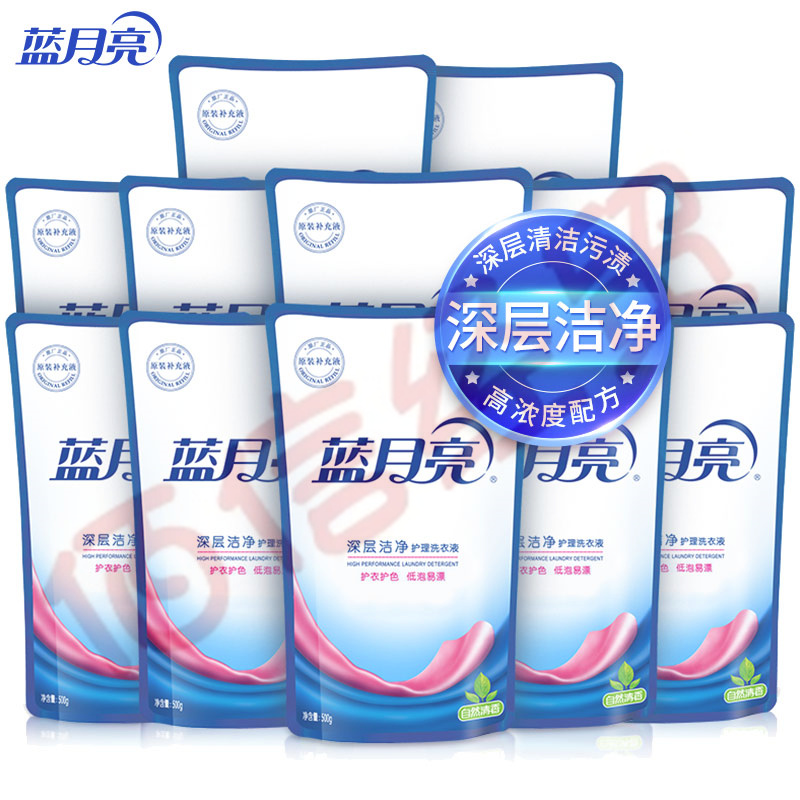 藍(lán)月亮 深層潔凈護(hù)理洗衣液袋裝500g*12 自然清香(整箱銷售)補(bǔ)充裝 自營