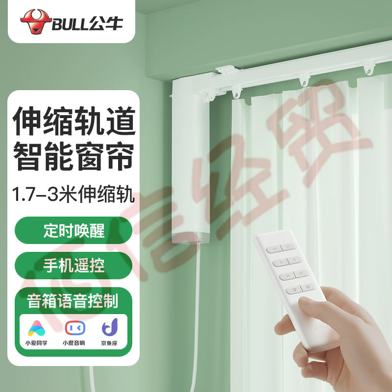 ¥1056.30公牛(BULL)智能窗簾 伸縮軌窗簾 小愛同學小度等音箱控制(電機+1.7-3米伸縮軌+遙控器+免費安裝)GDS015A
