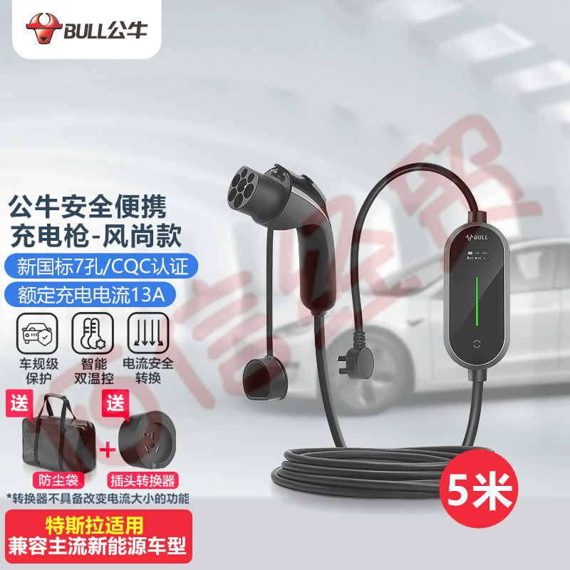 公牛新能源汽車充電器便攜充電槍適用于特斯拉小鵬比亞迪等 風(fēng)尚款5M-D2-A16B 自營