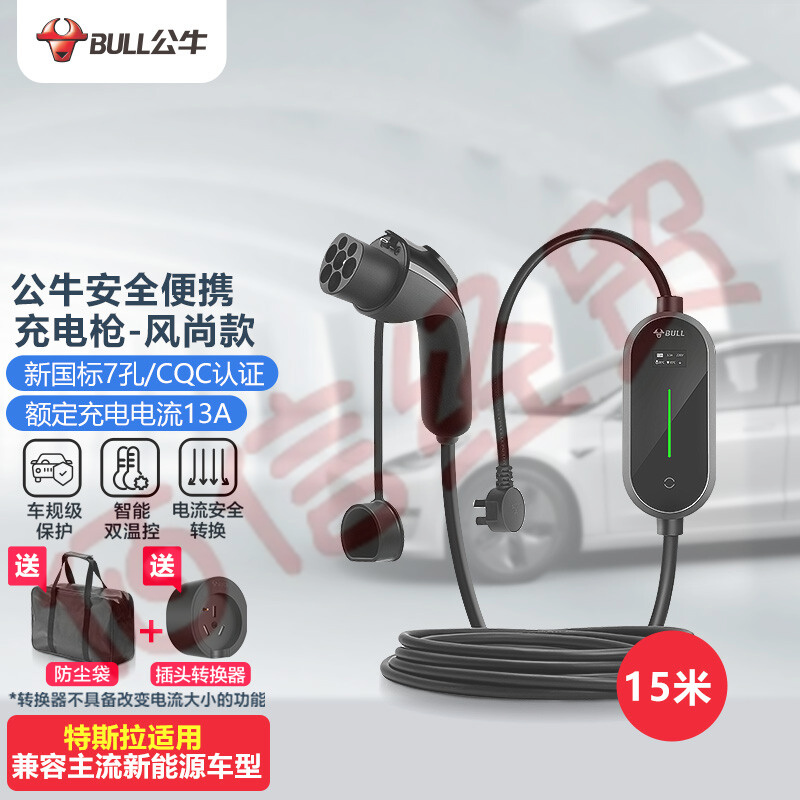 公牛新能源汽車(chē)充電器便攜充電槍適用于特斯拉小鵬比亞迪等 風(fēng)尚款15M-D2-A16B 自營(yíng)