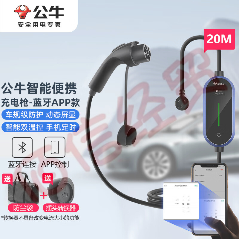 公牛(BULL)新能源汽車充電器便攜充電槍適用于特斯拉蔚來比亞迪等 藍(lán)牙版20M-D2-A16DA 自營