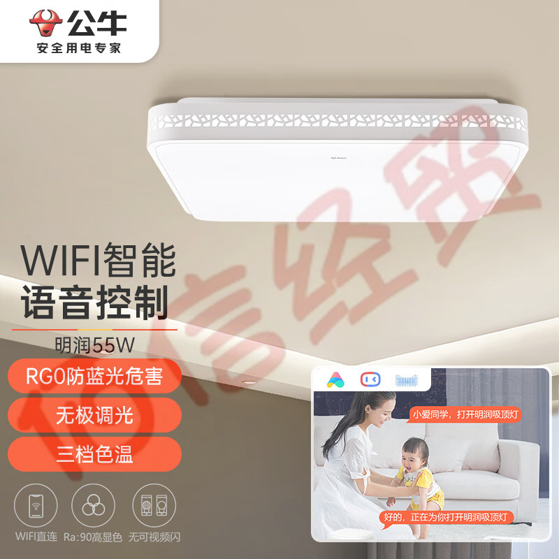 公牛(BULL)LED吸頂燈WIFI語(yǔ)音智能控制防藍(lán)光危害 MX-B055D-WS明潤(rùn)55W客廳臥室燈無極調(diào)光三檔色溫 自營(yíng)