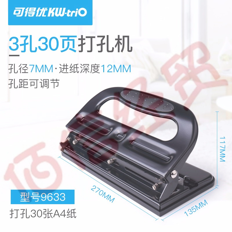可得優(yōu)多規(guī)格30頁3孔距可調(diào)三孔打孔機打孔器打洞機打洞器 9633可調(diào)孔距三孔可打30頁 自營