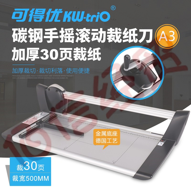 可得優(yōu)手搖型裁紙機滾動式切紙機重型切紙刀裁刀30頁裁紙器 A3規(guī)格手搖型13061裁切長度500mm 自營