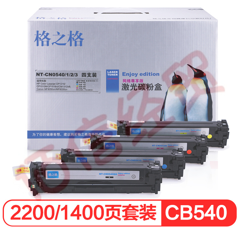 格之格CB540A硒鼓尊享版四色套裝適用惠普CP1215 CP1217 CM1312佳能LBP5050 LBP5050n MF8030Cn硒鼓# 自營